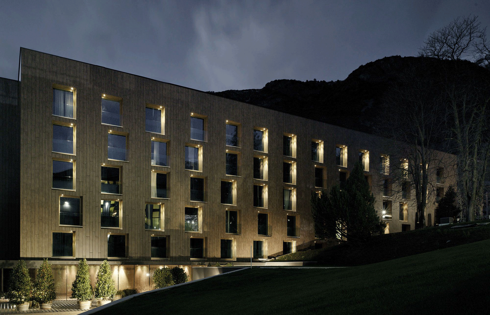 The redevelopment of the Hotel Billia aimed at rationally reorganizing the distribution of the internal spaces and creating a new and contemporary image to the well-known hotel in Saint Vincent. The design team achieved a sophisticated result through a stylish interior design, focused primarily on the areas of the convention center and on the new wing, together with a sensible restoration of the external facades of the historical building. The modern wing has been refurbished using a contemporary architectural language and clean geometries to locate and introduce new functions and spaces, where once only rooms were located there’s now new opportunities to host different types of use. Every room, 115, have been provided with new fullsize windows, changing the overall formal impression of the building. The historical building have been ‘cleaned’ and freed up from all those superfetation that are a result of the long history of the complex and ended up disturbing the outlook of the main elevation. Today the hotel reflects more organically the internal functions. The design of the convention center follows a new concept that focus on a stronger relation between the internal spaces, the exterior areas and the park. The main idea is to create a ‘transparent’ space where the borders between inside and outside are more fluid; creating a continuous connection between the building and the surrounding environment. The landscape design focused on reducing the impact on the existing environment: maintaining as much as possible the pre-existing specimens and respecting the current conditions of the park. The parking areas and all the plant rooms have been redesigned and relocated to reduce the esthetic impact and to allow for a higher efficiency